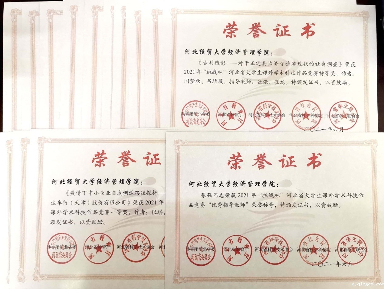 本届大赛自今年二月份启动以来,通过校内层层选拔,经过大赛评审委员会的初评、复评,以及终审答辩,我院报送的作品在全省1642件作品中脱颖而出,共有16项获奖。其中,《古刹残影—对于正定县临济寺旅游现状的社会调查》获得特等奖。《疫情下中小企业自我调适路径探析———阿里巴巴国家站与易路达车行(天津)股份有限公司》等3个项目获得一等奖,《本科生学业“增负”的必要性以及策略研究——以河北省高校为例》获得二等奖,《短视频等自媒体文化的思考》等11个项目获得三等奖。这些奖项的获得充分展示了我院人才培养水平。我院团委全面、高效、系统的组织工作也受到了赛事组委会的充分认可,最终被授予“优秀组织单位奖”。我院教师张强还获得“优秀指导教师”荣誉称号。