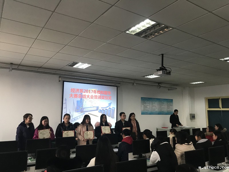 11月27日,经济系2017年模拟股市大赛总结大会暨颁奖仪式在南院三教502举办。实践教学部副部长柳冬青、经济系书记郑学栋、主任张玲芝出席总结会并为获奖同学颁奖,100余名学生参加了会议。
